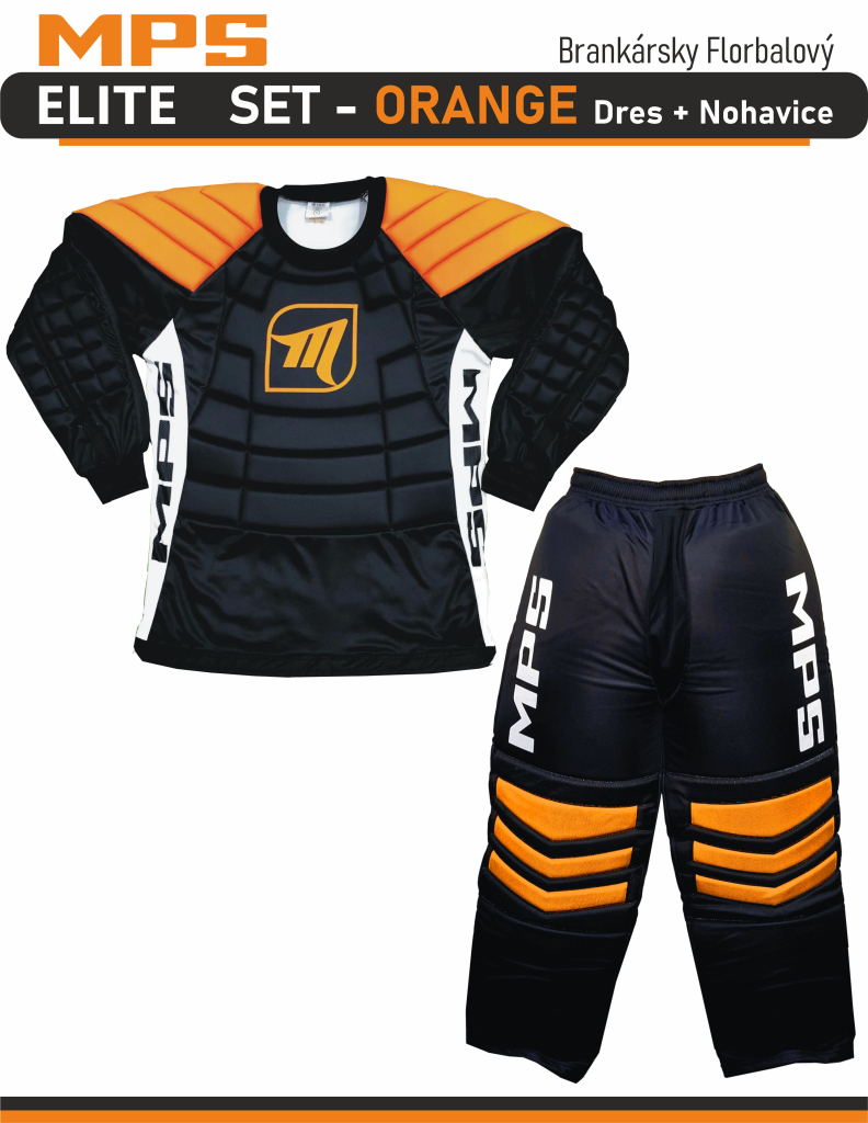 - MPS ELITE brankársky florbalový set - ORANGE dres + nohavice